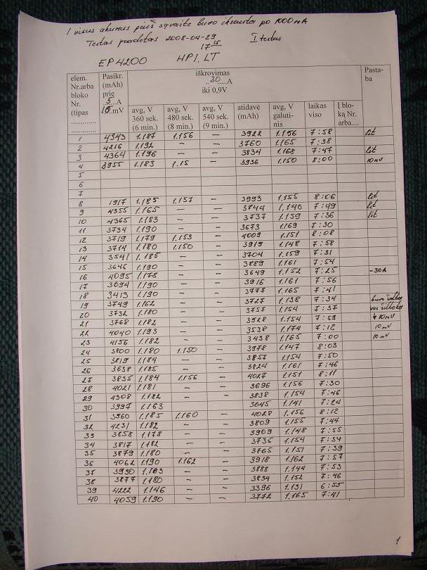 Stai Ep akumai pirkti praeitais metais 2008-04. Gali pasiziureti kad vienas kitas akumas isikraudavo virs 4200 mah. Bet ne vienas ju neislaikydavo 8 min... Ir atkreipk demesi, ka tie akumai atiduoda- isikrauna tai daug, o atiduoda vos ne maziausiai ...
