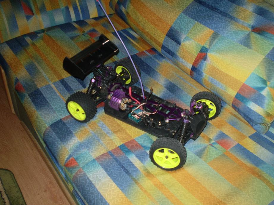 i komplekta ieina: akumuliatorius himoto 1800mah, pakroveja(paprastas, negalingas), varikli purple tiger (vaziutas du kartus), reguliatoriu himoto, himoto rc aparatura (trimeriai abiem kanalam ir epa), vienas standartinis servo mechanizmas... bei instrukcija (jai jos kam nors reikia :D ), visi kontaktai perlituoti i gerus paauksuotus 4mm ir 3.5mm kontaktus...