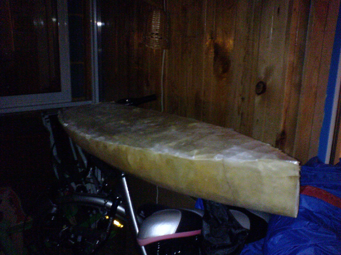 korpusas is stiklo audinio su epoksidine derva. "balvonas" buvo darytas is popireriniu spanhautu, uzpiltas makrofleksu.