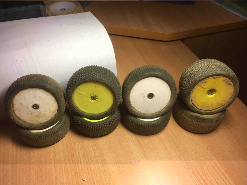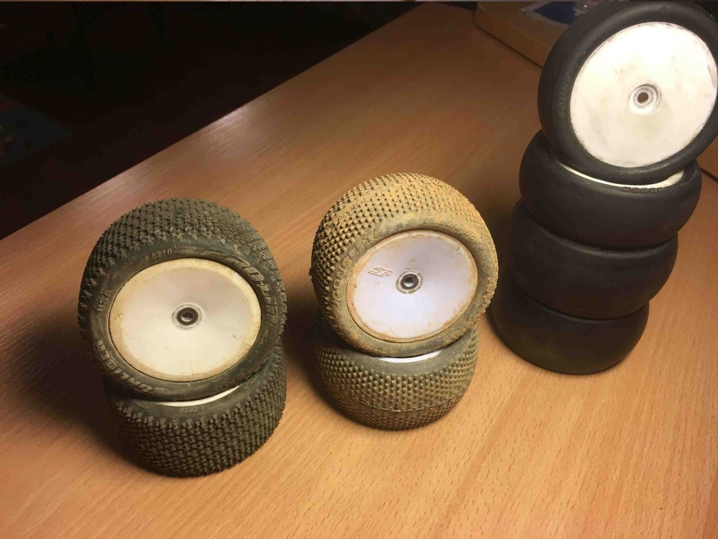 Ratai - Jconcepts, aka, proline: - Jc double dees - galinės, likutis ~80proc, kaina 12eur; - proline caliber - galinės, likutis ~50-60proc, ae hex, kaina 6eur; - Slikai - visas setas, tiks lasos treniruotėm, arba šiaip pasivažinėjimams ant lygių dangų, kaina 10eur; - proline holeshot - priekinės, 12mm hex, likutis: beveik slick, kaina 4eur; - proline holeshot - priekinės, ae hex, likutis ~40proc, kaina 5eur; - jc - galinės, beveik slick, kaina 5eur; - jc double dees - prasimalęs vienas hexas, likutis ~30proc, kaina 4eur;