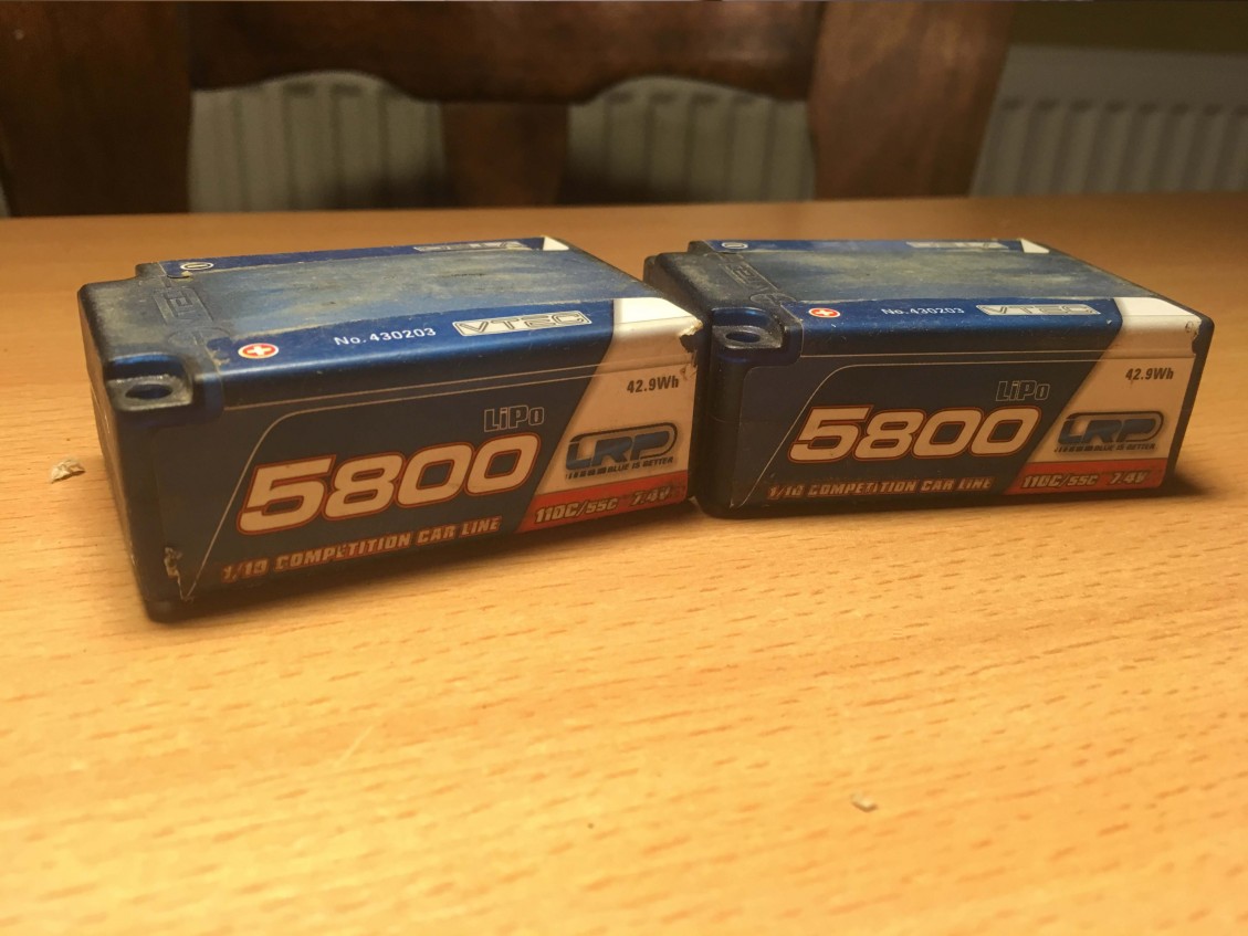 LRP lipo akumuliatoriai - 20eur, 2s, saddle pack, 5800mAh, 55/110c. Truputi pasipūtę, bet važiuot netrukto, įsideda normaliai, talpa nedingus, plastikas aplink jungtis neapsilydęs.