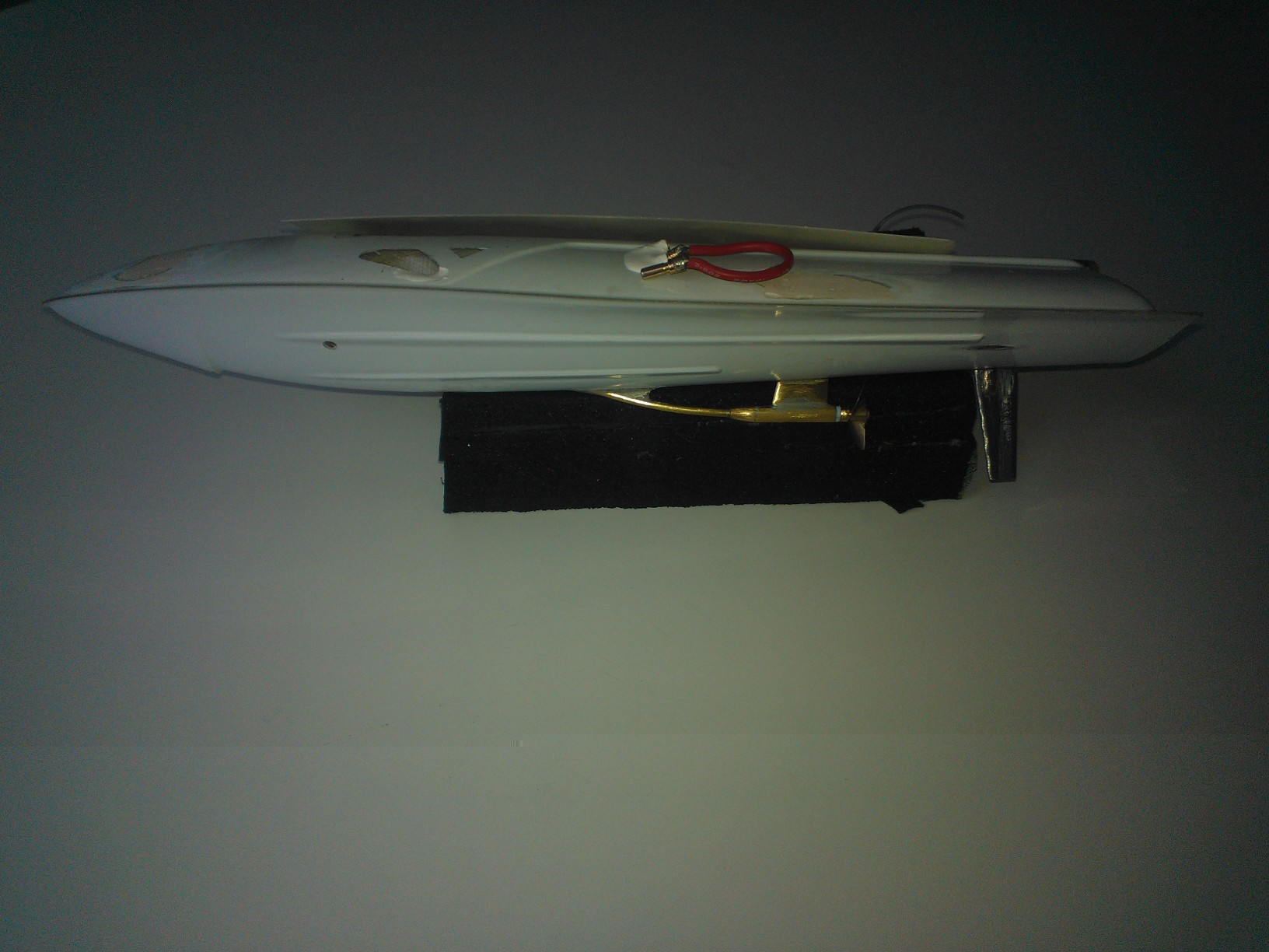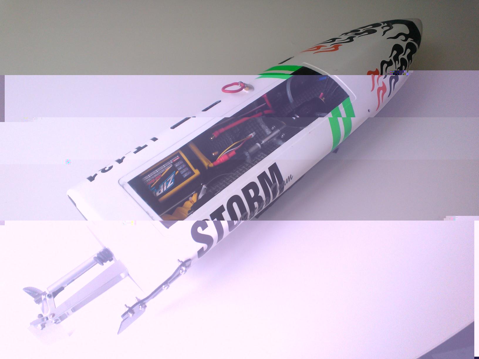 Apie patį laivelį-šiuo metu jis plaukia truputį greičiau nei 100 km/h. Palyginti su brėžiniais,aš truputį praplatinau atstumą tarp sponsonų ir praplatinau bei paaukštinau korpusą,nes kitaip mažai vietos aušinimui,baterijai ir ESC.Taip pat vairą tvirtinau kitaip,nei brėžiniuose.Be to,lanksčiosios jungties antgalis sukasi trijuose guoliukuose.Teoriškai su šiuo sraigtu, motoru ir baterija jis gali plaukti 103 km/h,taigi norint toliau progresuoti reikia pakeisti bateriją į 4 celių,motorą iš 4050 kv į 3400 kv (turiu),ir sraigtą iš Octura X637 į X640 ar net X642.Tuomet jis turėtų plaukti apie 130 km/h.