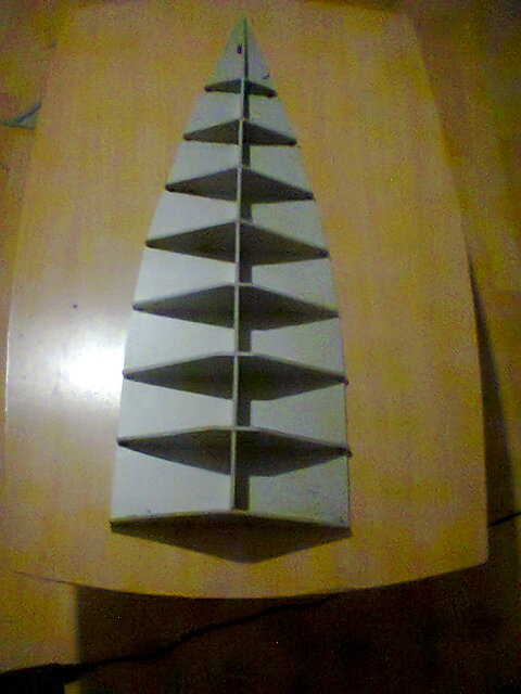 Pradėjau nuo brėžinio: išsididinau ''griaučius'' ant popieriaus. Išsikirpau, tada persikėliau ant fanieros . teko padirbėt su rankiniu siaurapjukliu. taigi ''griaučiai jau padaryti, dabar reikia kažkaip ''apvilkt tuos griaučius, ai prisipjausčiau "lentų" iš grindų pakloto-deprono 10mm pločio. Lentas suklijavau su užsilikusiais laminuotų grindų klijais, labai panašiais į lipalą.