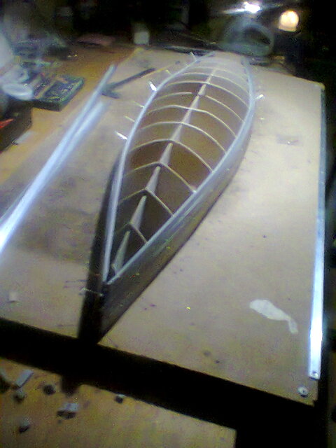 Pradėjau nuo brėžinio: išsididinau ''griaučius'' ant popieriaus. Išsikirpau, tada persikėliau ant fanieros . teko padirbėt su rankiniu siaurapjukliu. taigi ''griaučiai jau padaryti, dabar reikia kažkaip ''apvilkt tuos griaučius, ai prisipjausčiau "lentų" iš grindų pakloto-deprono 10mm pločio. Lentas suklijavau su užsilikusiais laminuotų grindų klijais, labai panašiais į lipalą.